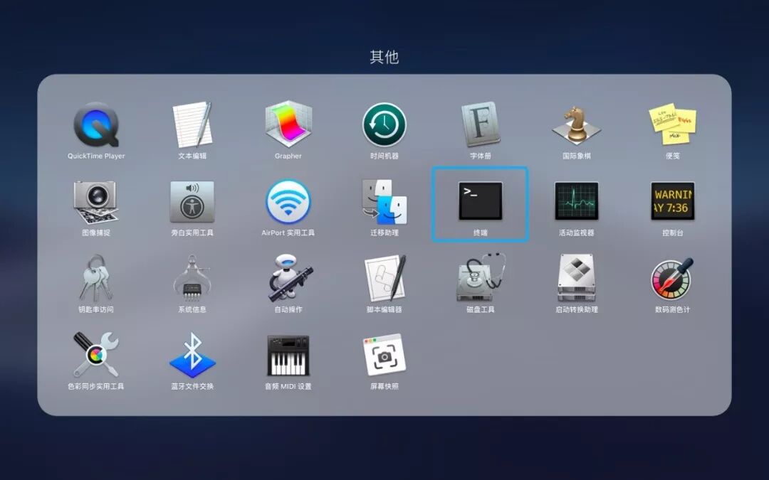 3.在“启动台”里面找到“其他”并选择“终端”