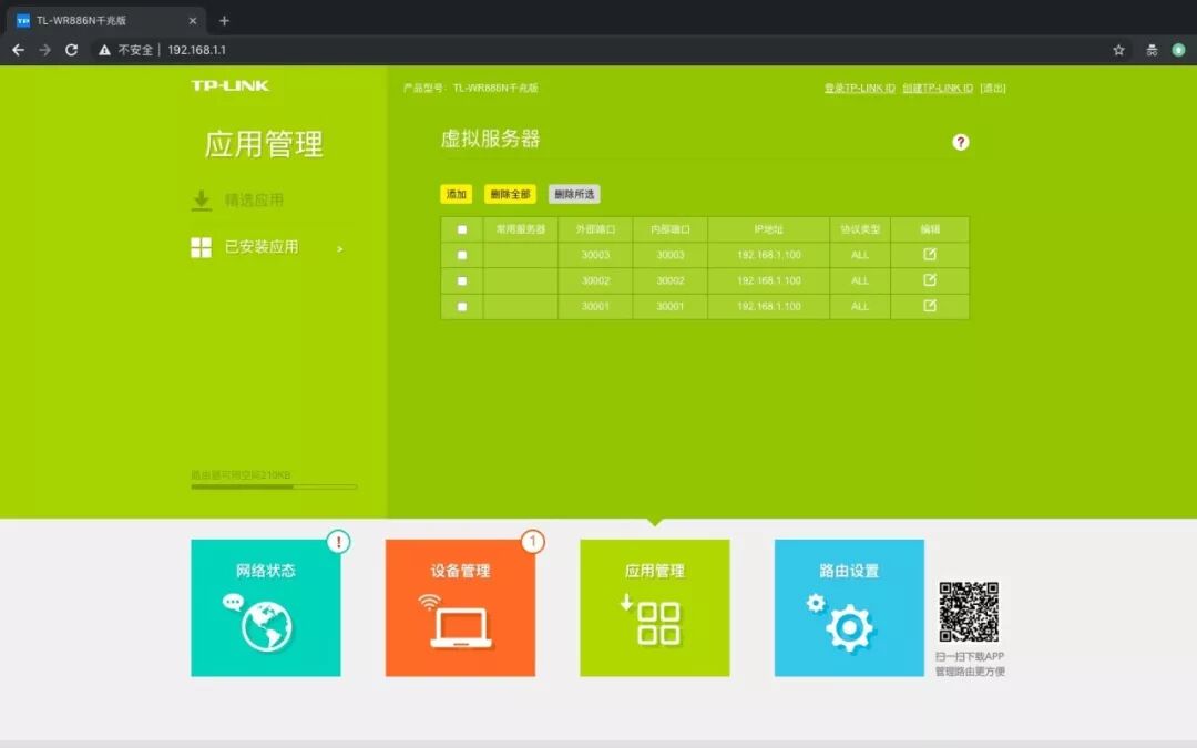 2.在“应用管理”一栏中找到“虚拟服务器”并点击